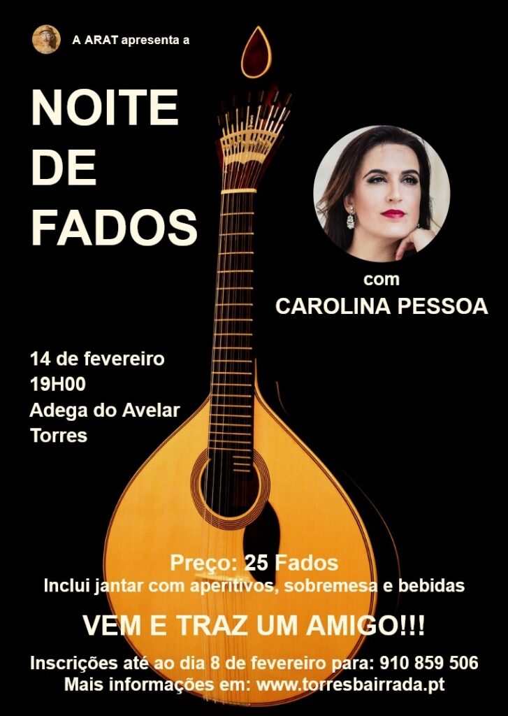Eventos 2026 Noite de Fados Divulgamos a próxima atividade da ARAT. Ceia e noite de Fados na Adega do Avelar. Por Susana Silva, Há 2 horas23 Janeiro 2026 Deixe um comentário